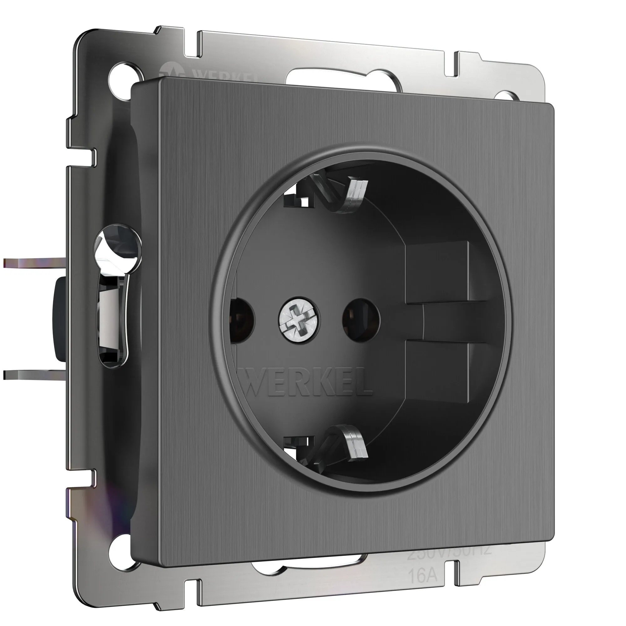Розетка с заземлением 16 А графит рифленый W1171004 — стиль, безопасность и долговечность от Werkel