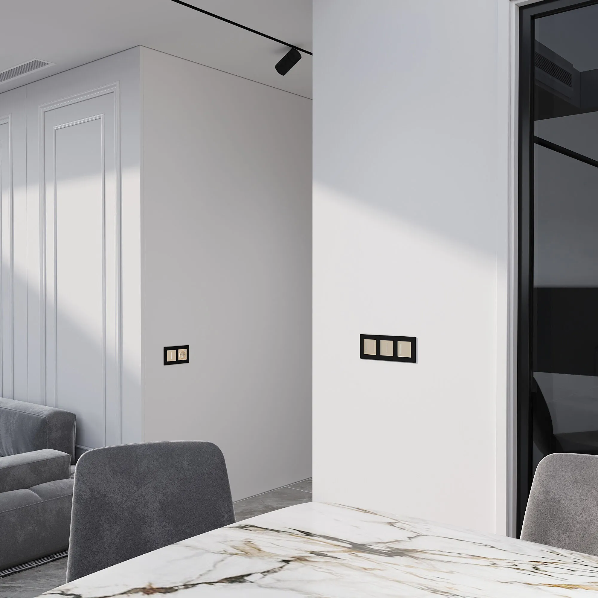 • Встроенная белая подсветка — мягко обозначает выключатель в темноте, делая его легко находимым без включения основного освещения.