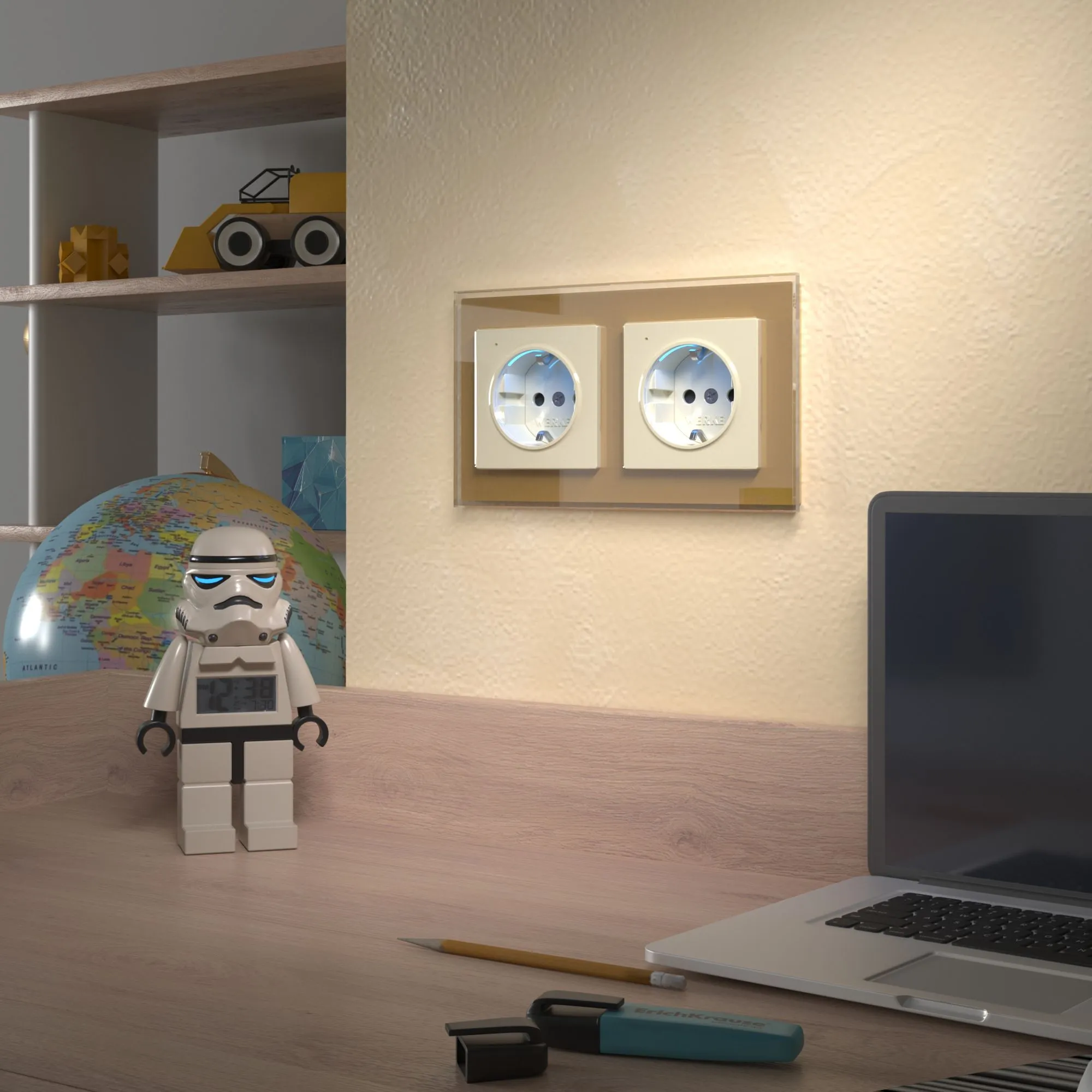 Такой подход обеспечивает мягкое, ненавязчивое освещение, идеально подходящее для спален, детских комнат, коридоров и прихожих. Больше не нужно включать основной свет, чтобы найти розетку или подключить устройство — всё под рукой, даже ночью.