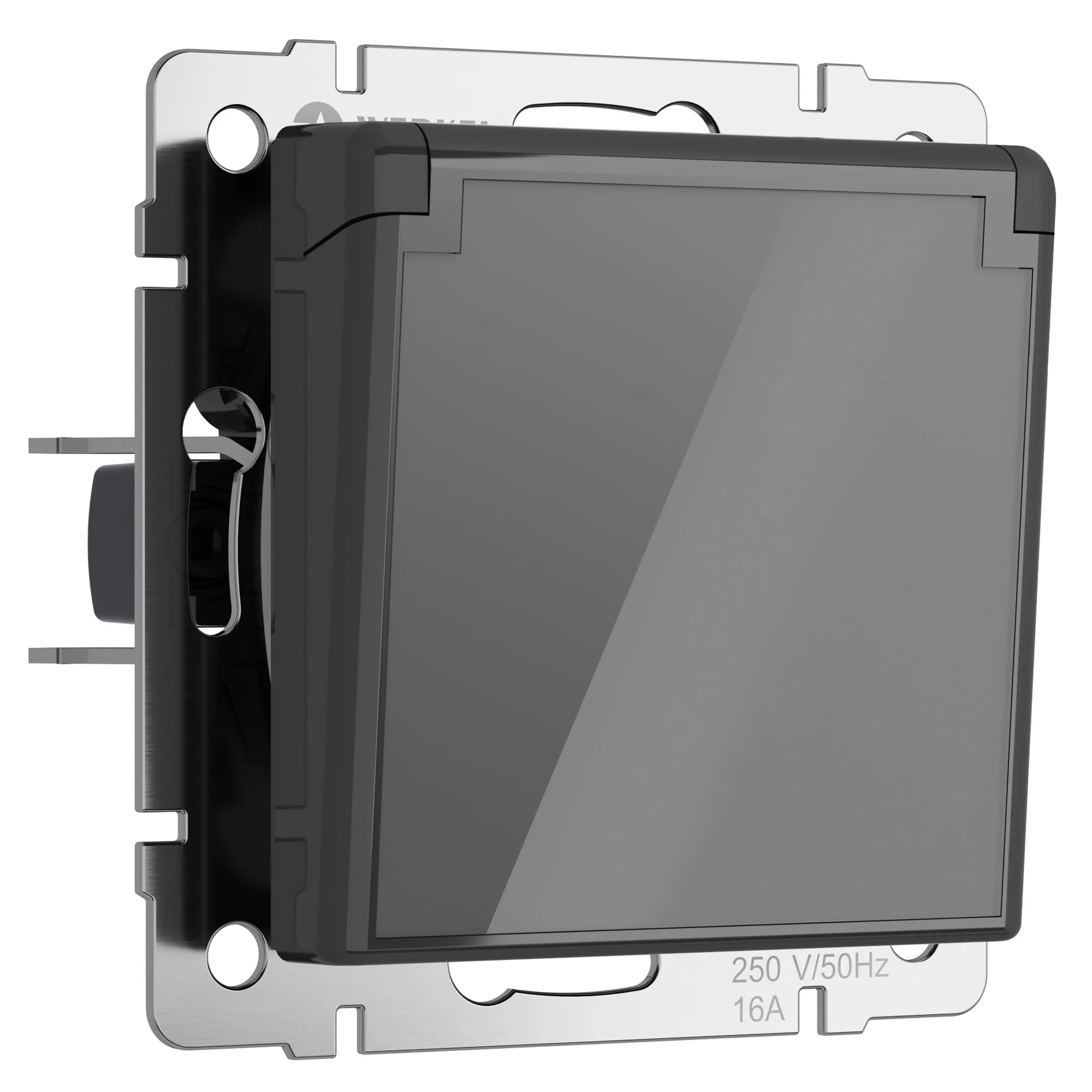 Розетка влагозащищенная с заземлением с крышкой и шторками (графит акрил) W1171244