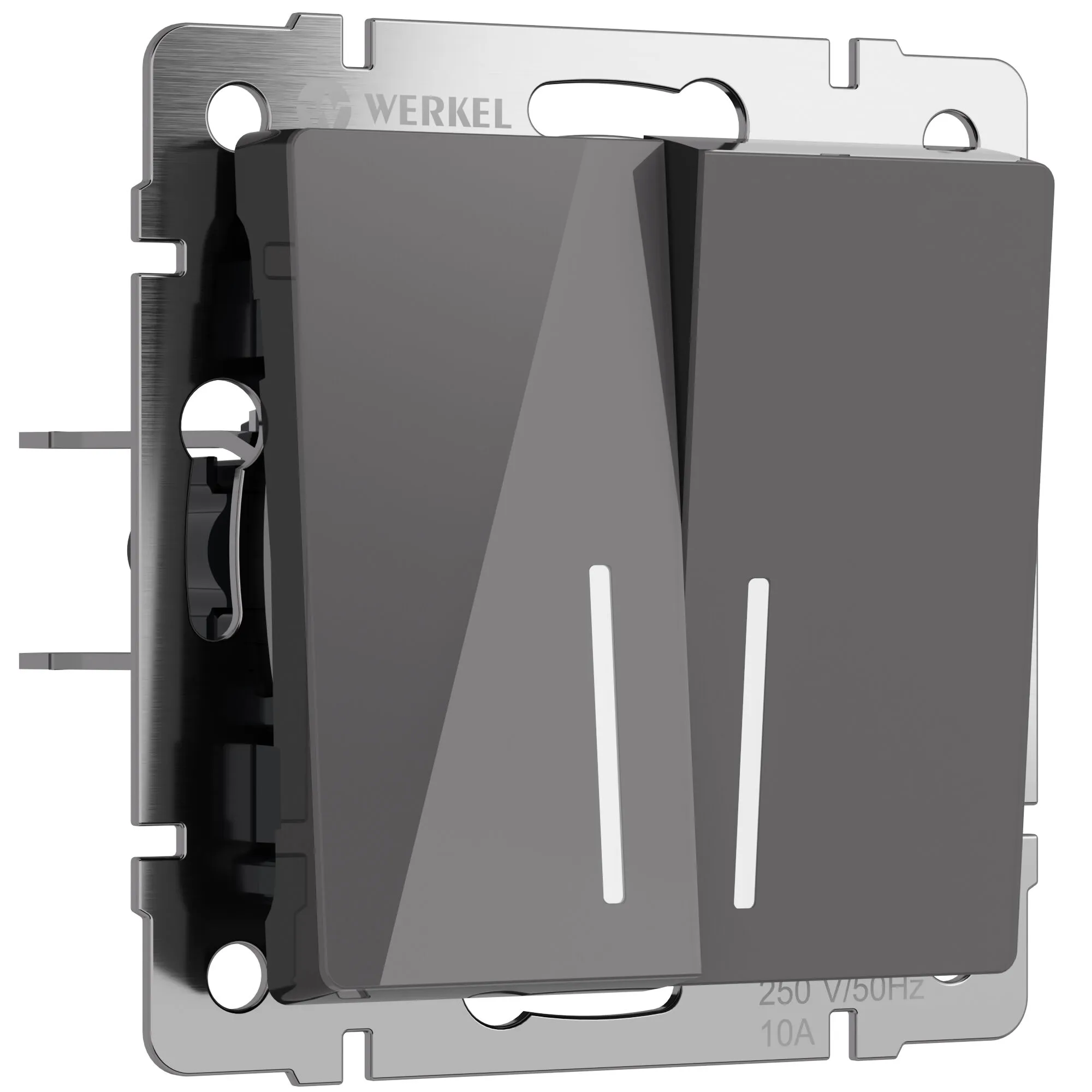 Выключатель двухклавишный проходной с подсветкой Werkel графит акрил — управление светом из двух точек + комфорт в темноте